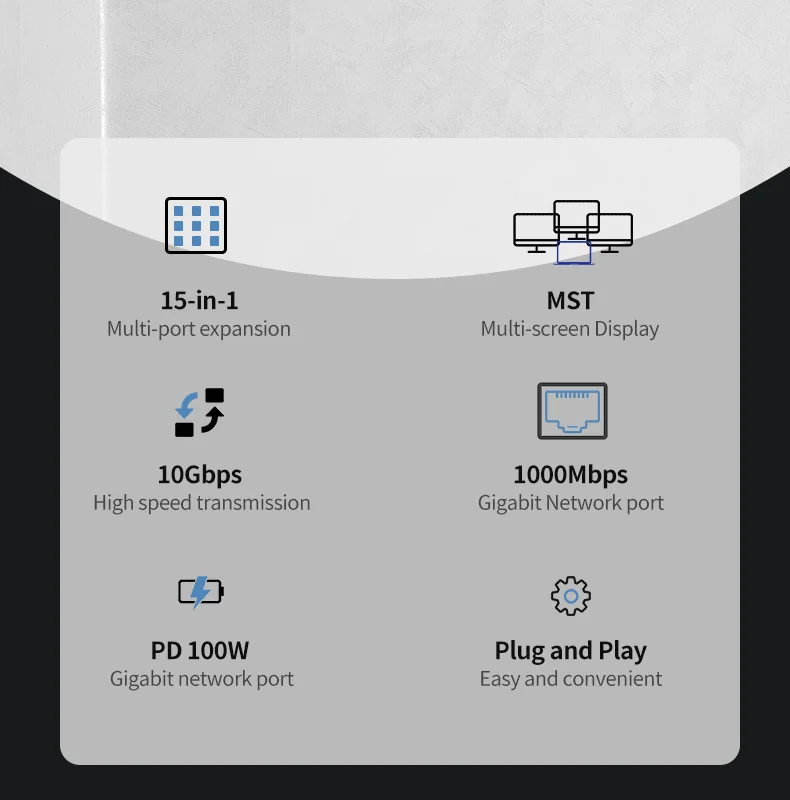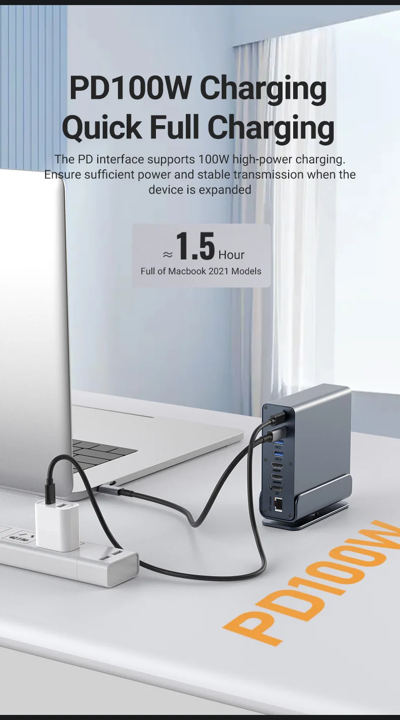 • High-Speed Transfers :Equipped with USB 3.0/2.0 and PD 3.0, this docking station ensures fast and efficient data transfer between devices.