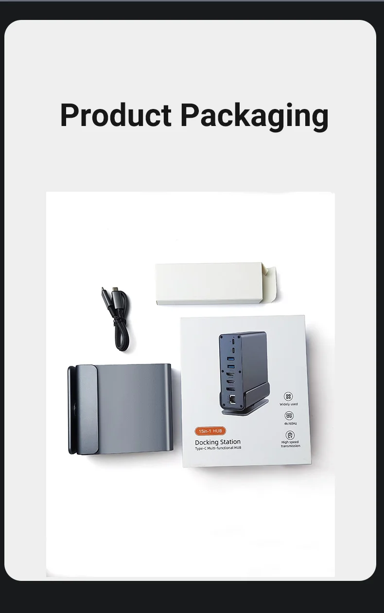15 in 1 USB-C Docking Station 4K HD Vertical Hub with Triple Monitor ,RJ45 1000M,USB 3.0/2.0,PD 3.0,SD/TF,Audio 3.5 for Mac Pro
