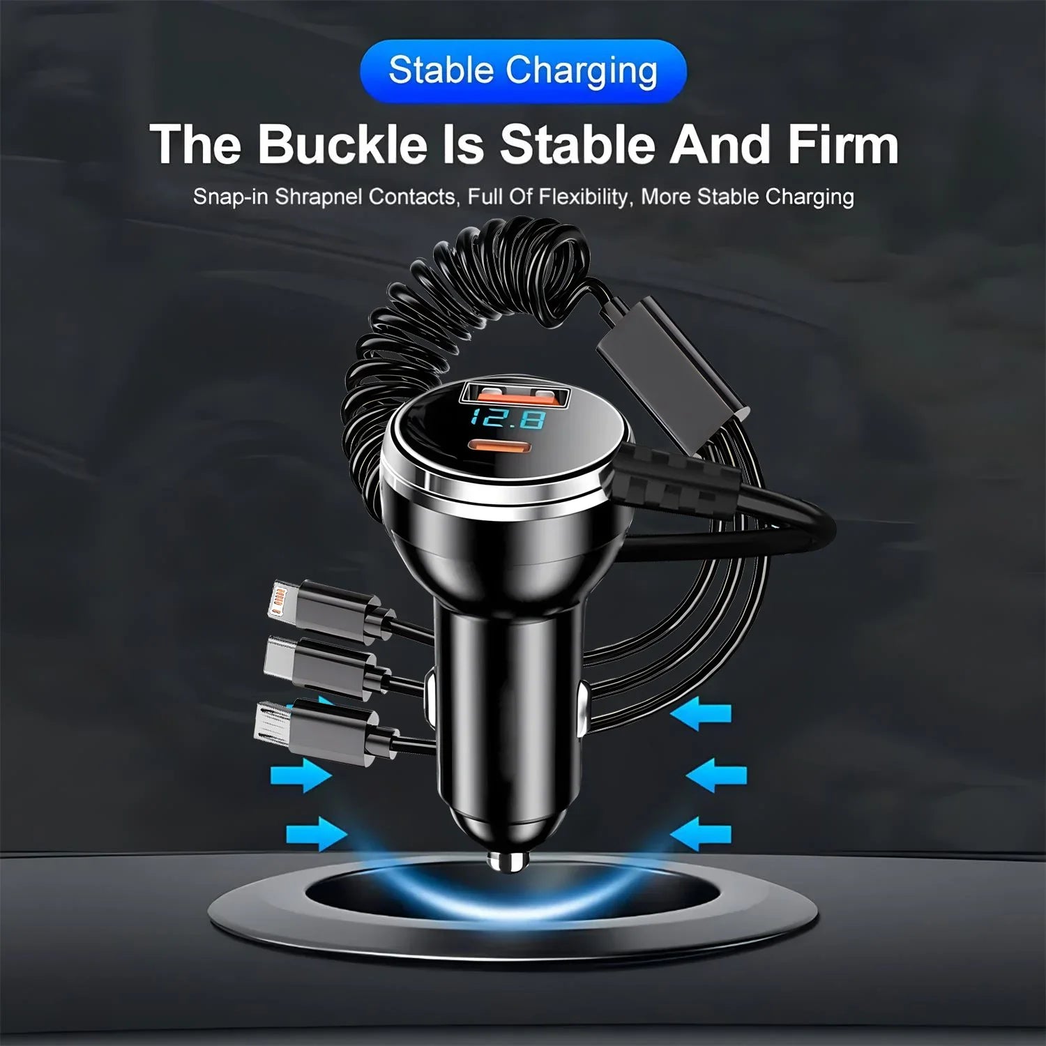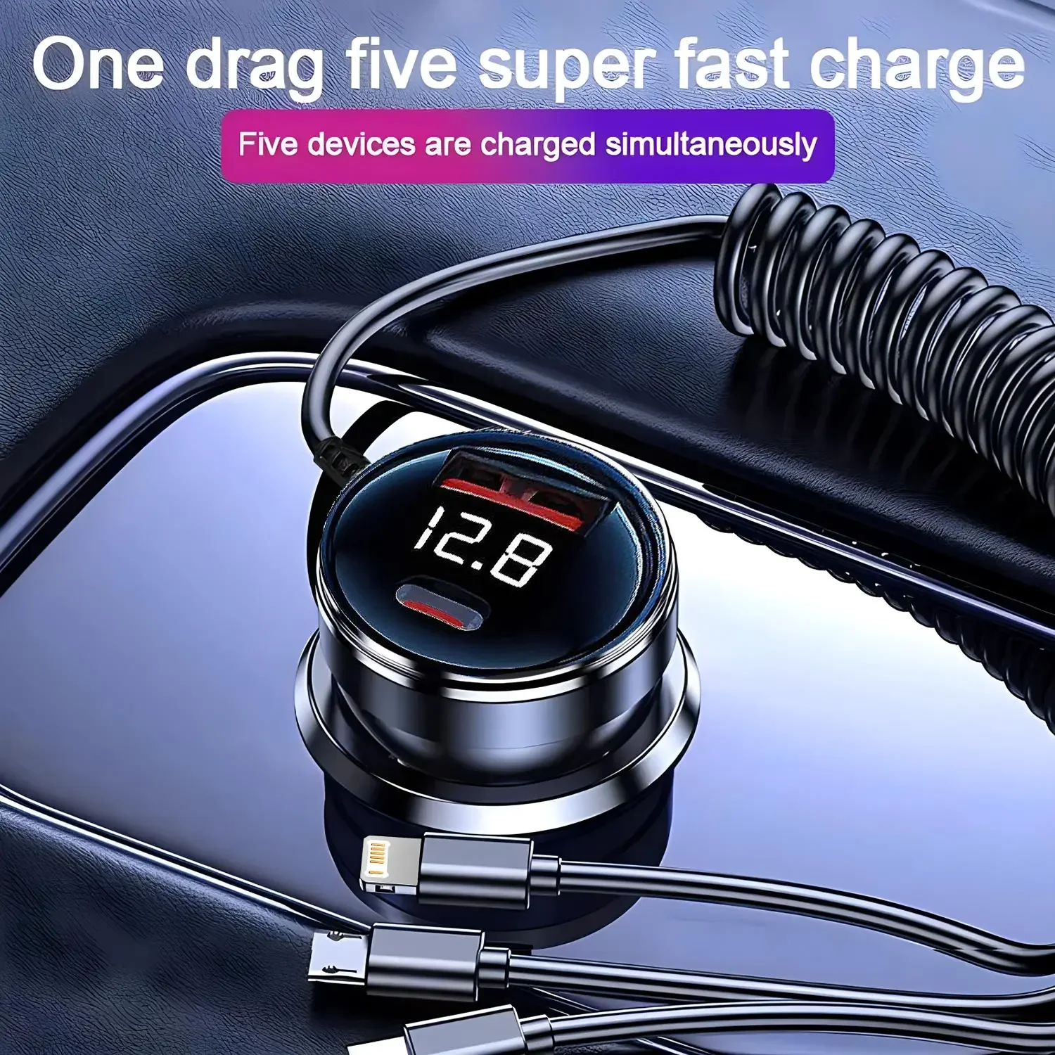 230W Car Charger Fast Charging USB Type-C PD QC3.0 with Retractable Cable Universal Phone Adapter for iPhone Samsung Xiaomi
