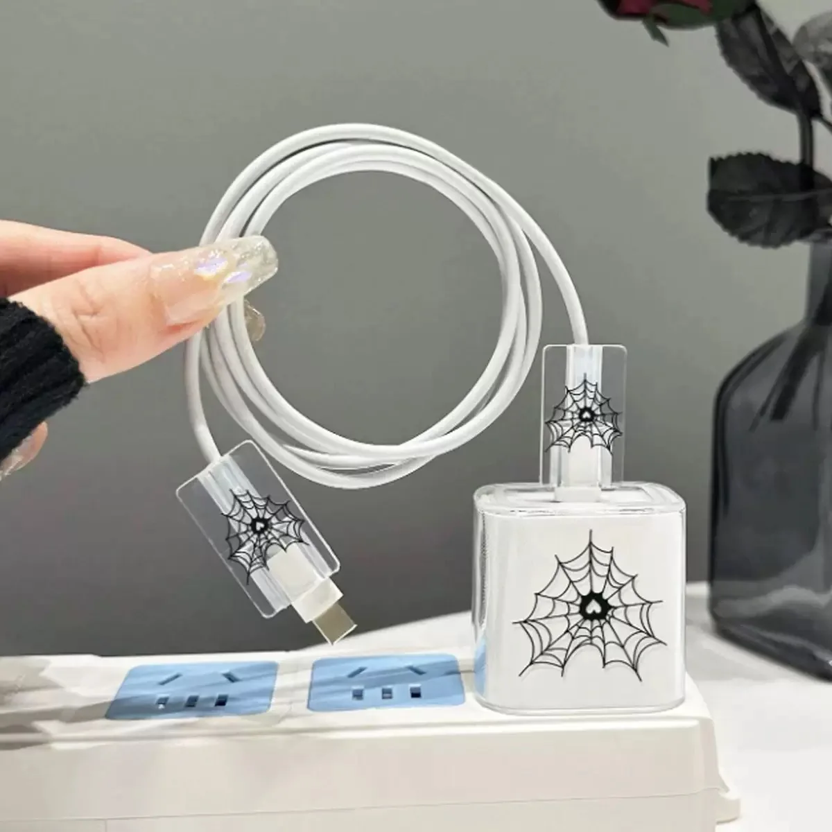 3-Piece set Charger Spider Case For Apple IPhone 18W 20W Transparent Data Wire Winder Cable Protectors Port Breakproof Protectio