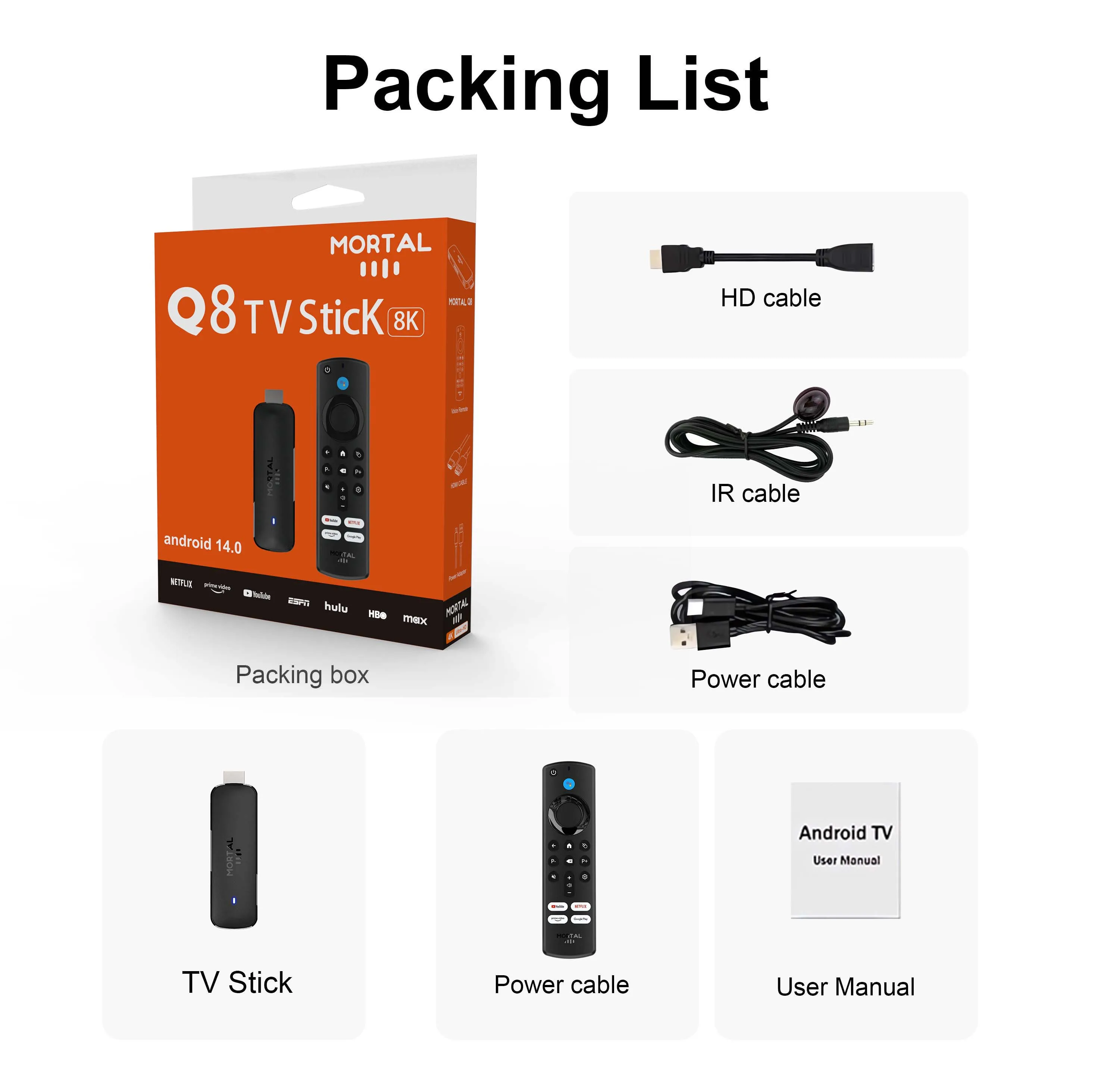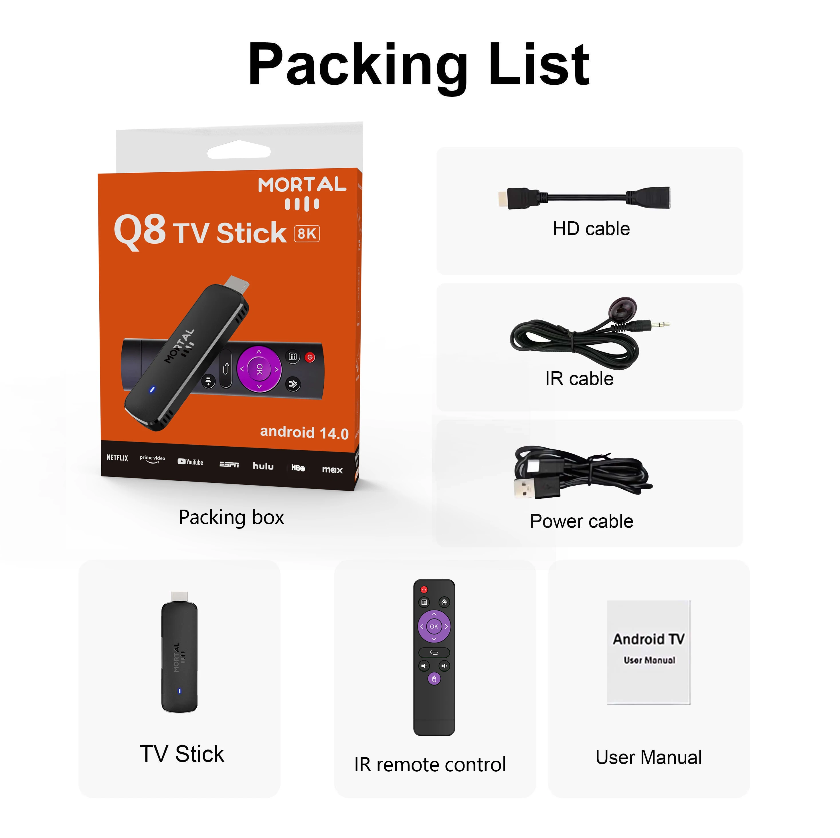 Mortal Q8 Global Version Android TV Stick Voice Remote Android14 8K 4K Video Wifi6 Netflix YouTube Fast streaming Fire TV stick