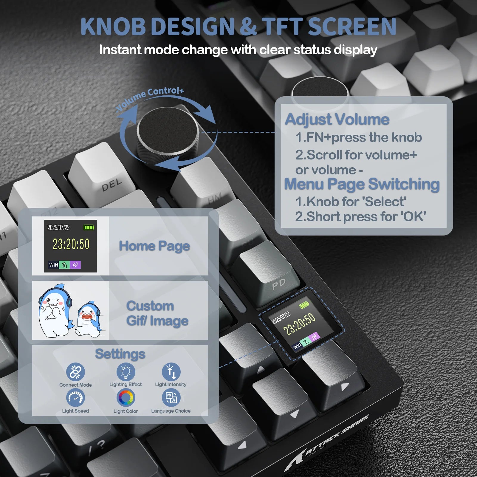Attack Shark X820Ultra Wireless 75% Mechanical Gaming Keyboard with Screen & Knob Hot Swappable 2.4GHz/BT/Wired RGB