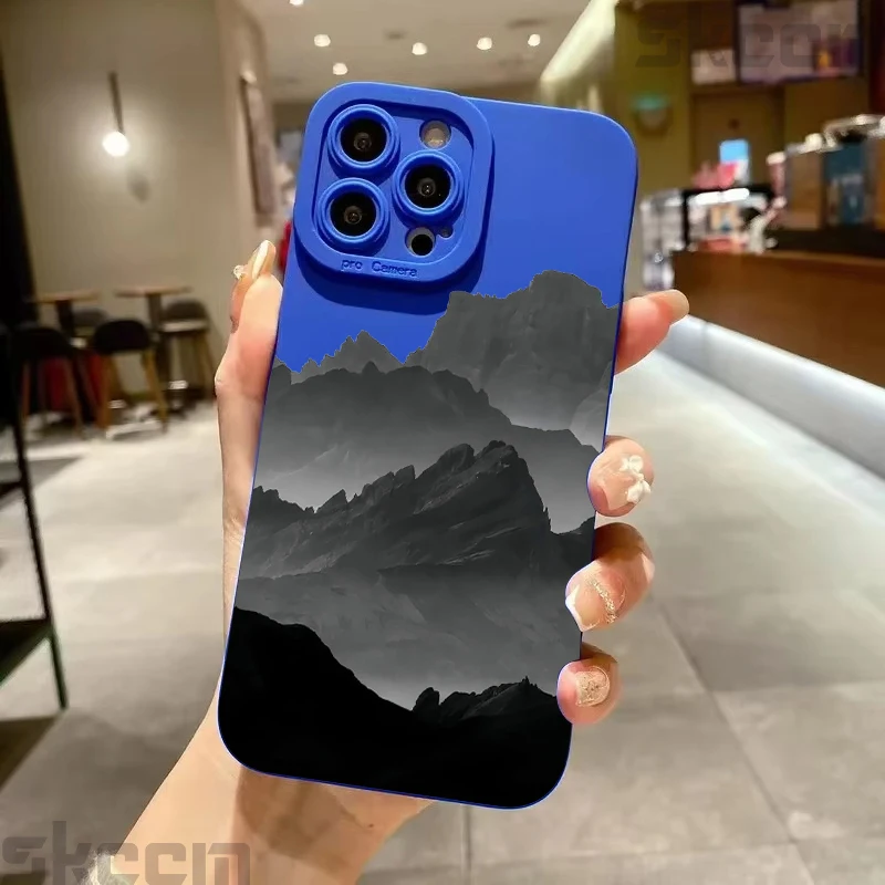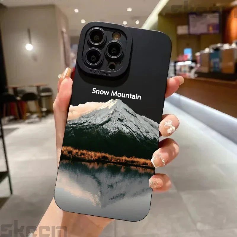 Black Mountain Peak Pattern Phone Case For iPhone 16 15 14 Pro Max 11 12 13 Mini XS XR X 8 7 Plus Shockproof Soft Silicone Cover