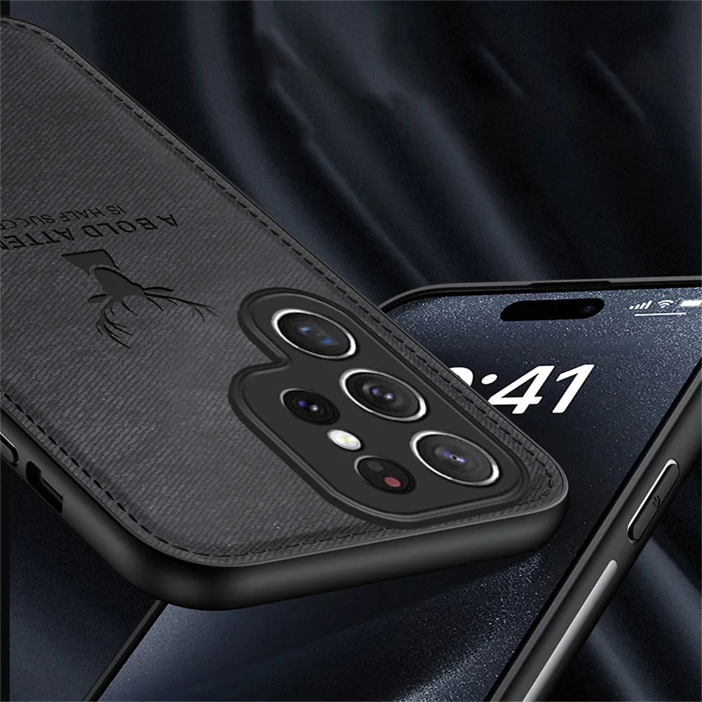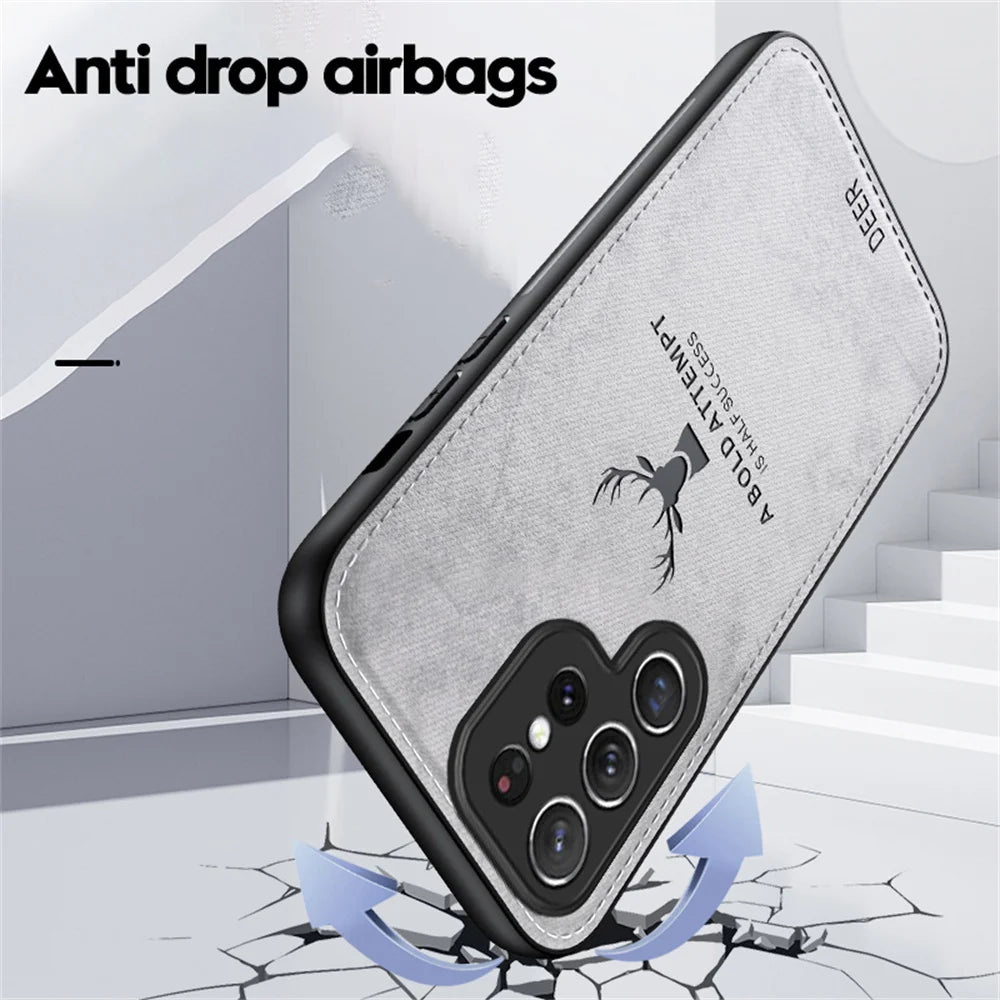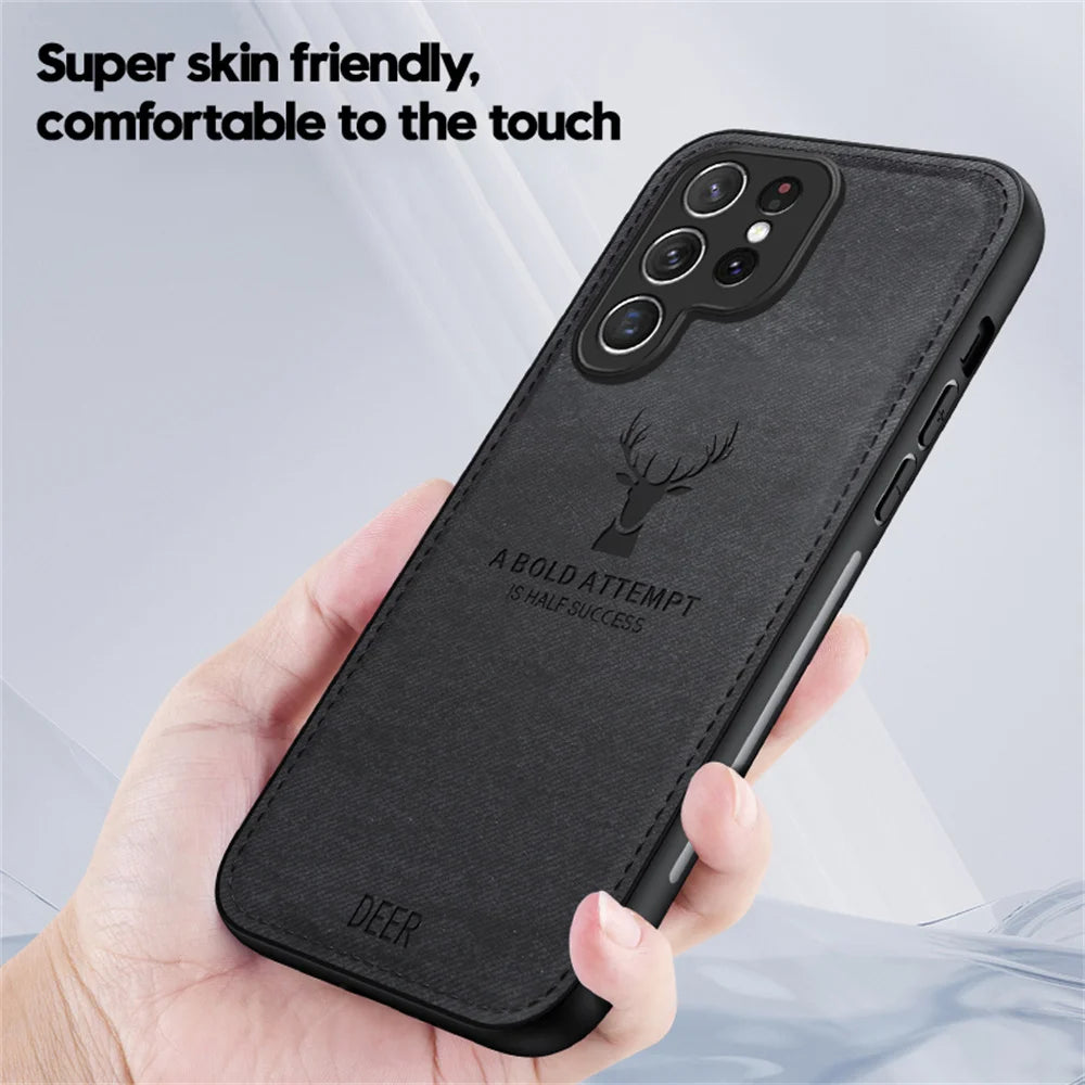 Business Fabric Pattern Deer Case For Samsung S25 S24 S23 S22 S21 Plus Ultra S20 FE Note20 A16 A36 A55 A54 A52 A35 A34 A32 A25