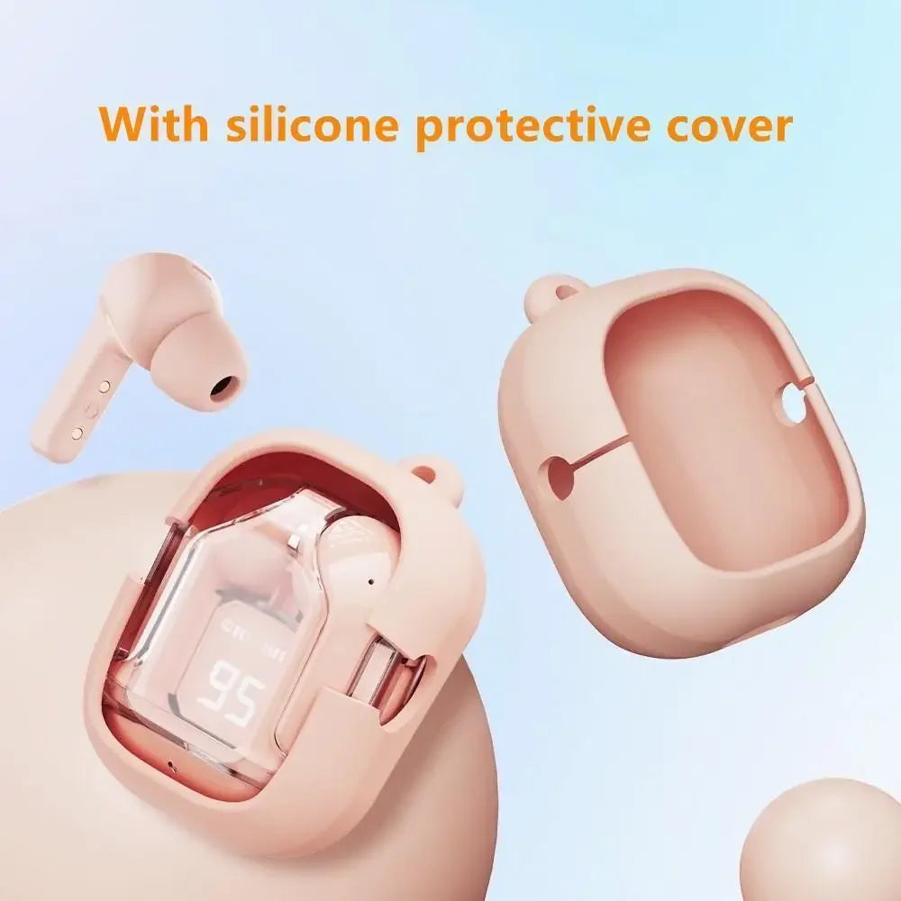 5. [LED Digital Display and Colorful Design] The accurate LED display of the charging case and the two earphones allows you to know the power status of the wireless earphones and the charging case at any time. This series of Bluetooth headsets uses a futuristic translucent charging box with a total of 5 colors. These waterproof earplugs can effectively prevent splash damage caused by sweat and rain.