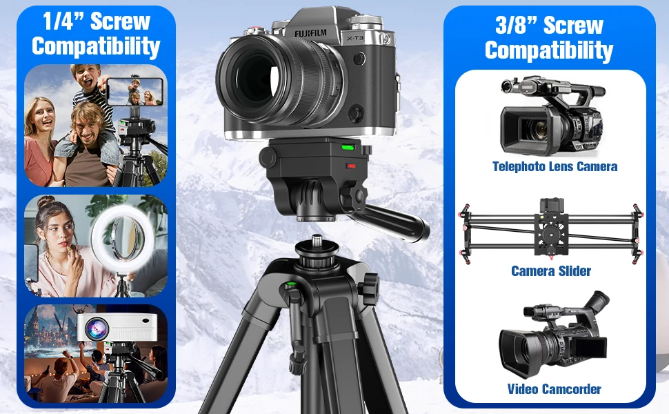 【COMPATIBLE PRODUCTS & PHONE MODES】: There is a rotatable phone holder. You can fix the phone at any angle by tighten the knob. The holder can be stretched from 6cm to 10cm. For all phones including iPhone 15 Pro Max/15 Pro/14/13/12/XS/Samsung Galaxy/Xiaomi, etc. It equipped with a cold shoe which can be used for microphone or light. It also equipped with a 1/4” and a 3/8” screw. It is compatible with Sony/Canon/Nikon/Fujifilm cameras,DSLR, SLR, webcams, compact camcorders, digital cinema cameras.