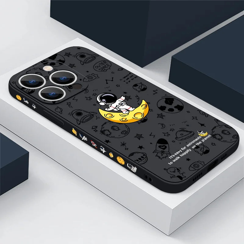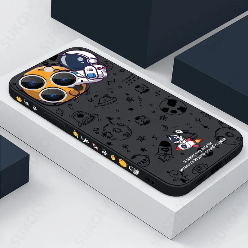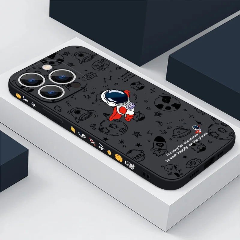 Cartoon Astronaut Pattern Case For iPhone 16 15 14 Pro Max 11 12 Shockproof Silicone Soft Phone Cover For iPhone 13 14 15 16 Pro