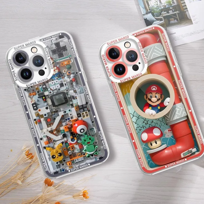 Cartoon Super Mario Bros Case For Iphone 16 15 11 14 13 12 Pro Max Mini 7 8 Plus 8X XS Cover Silicone Transparent