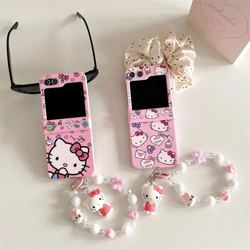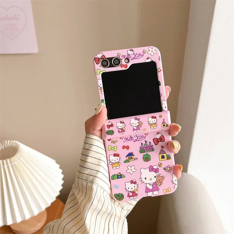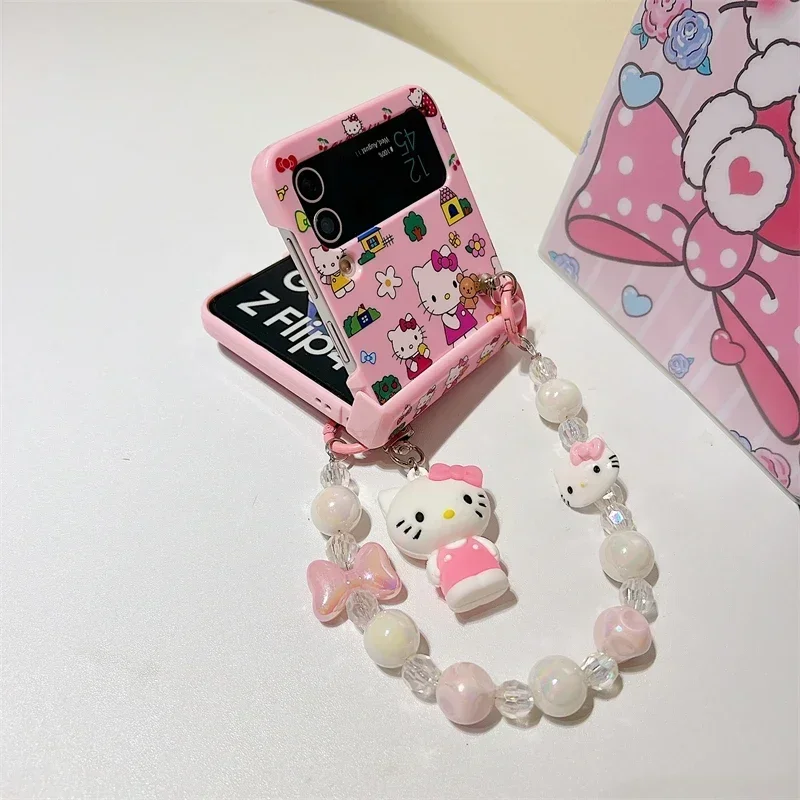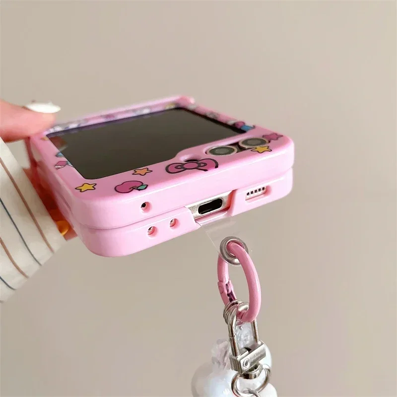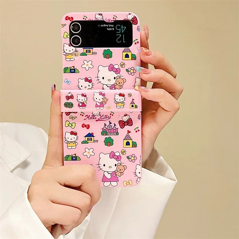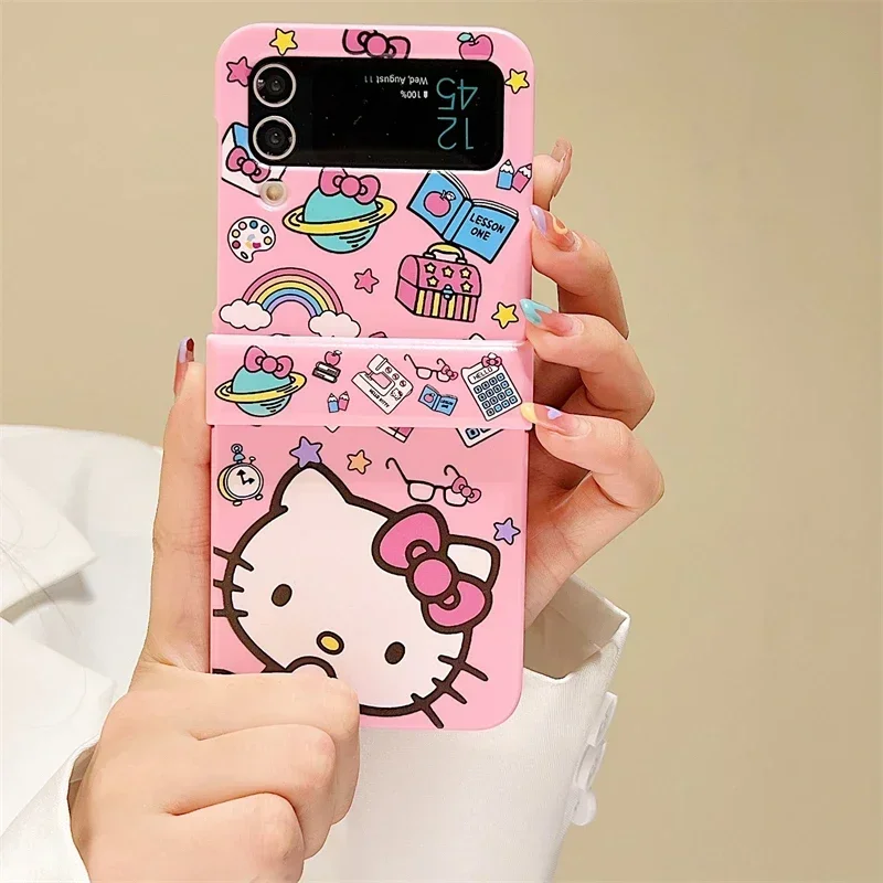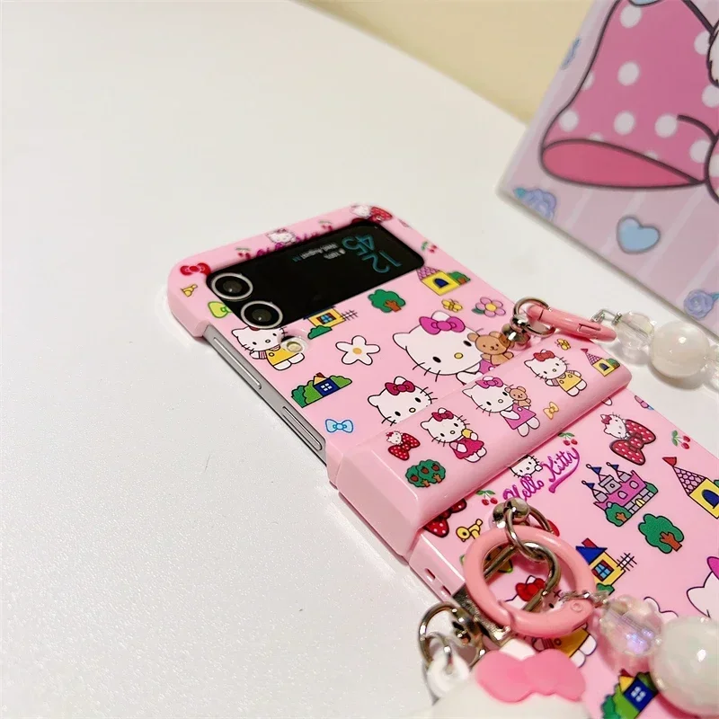 Cute Cartoon Sanrio Hello Kitty Phone Case For Samsung Galaxy Z Flip 6 5 Candy Colorful Hard Cover For Z Flip 3 4 With Lanyard