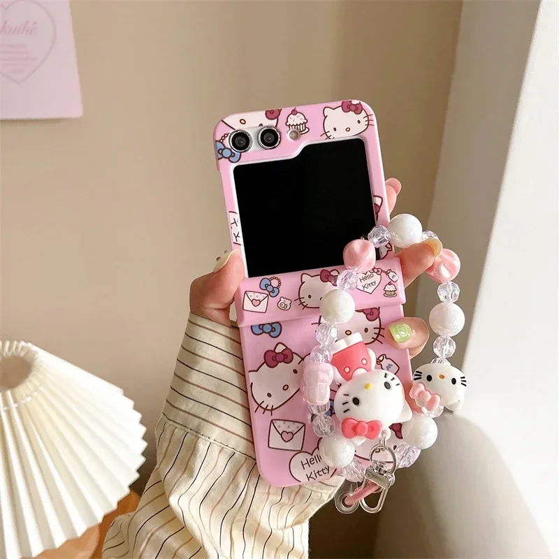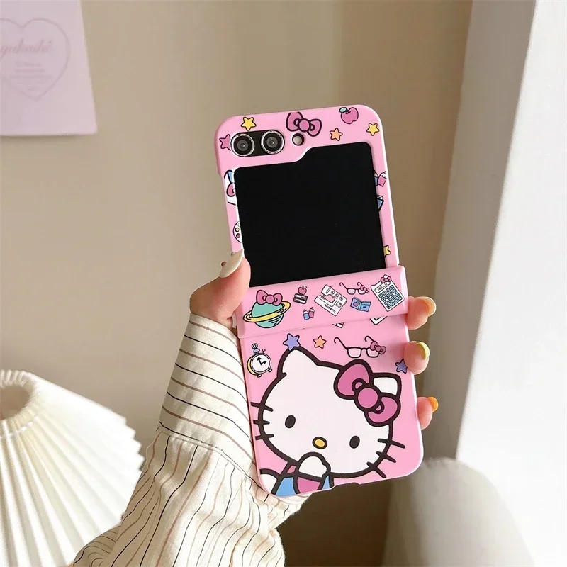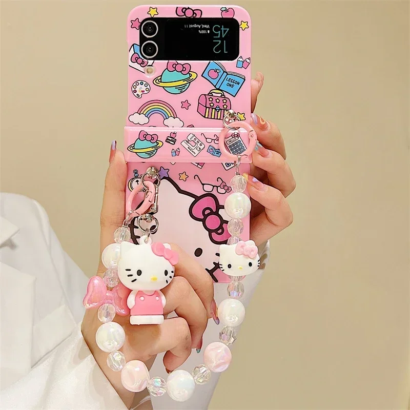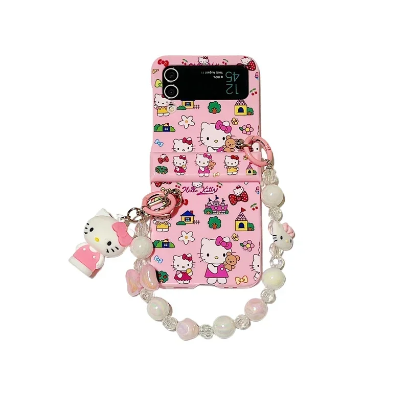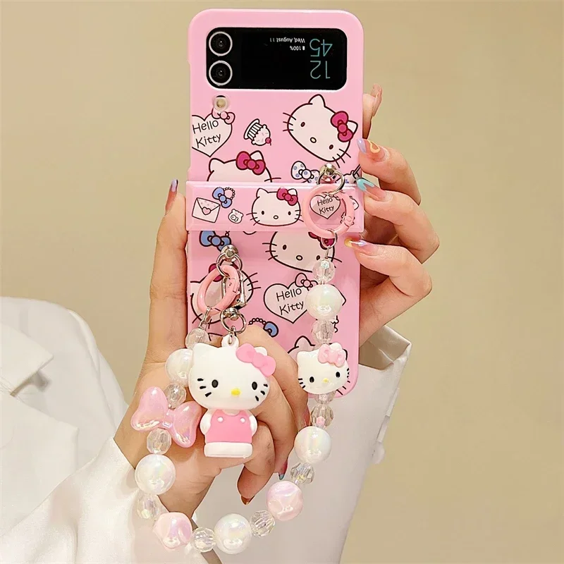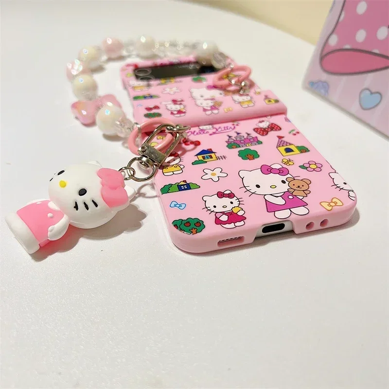 Cute Cartoon Sanrio Hello Kitty Phone Case For Samsung Galaxy Z Flip 6 5 Candy Colorful Hard Cover For Z Flip 3 4 With Lanyard