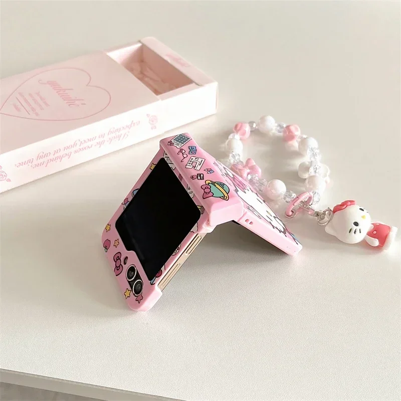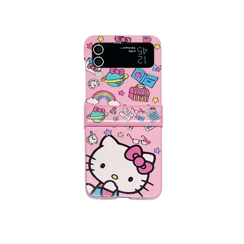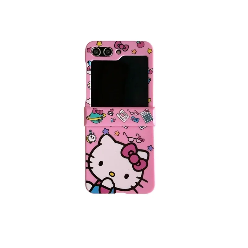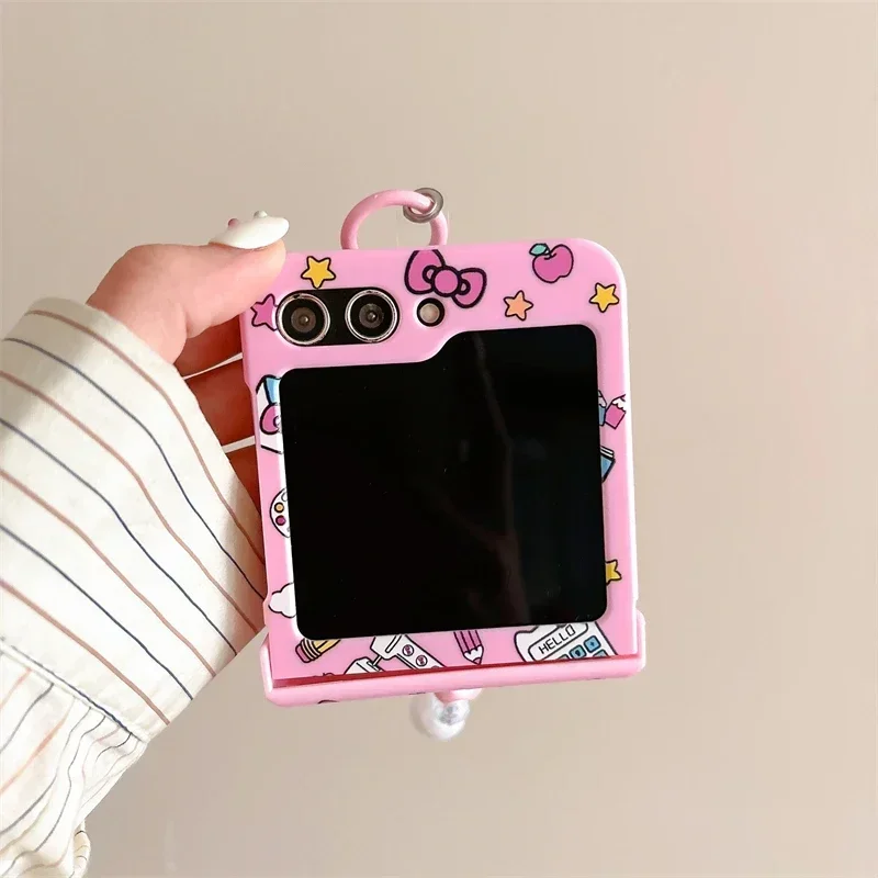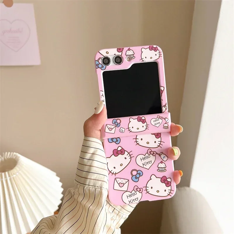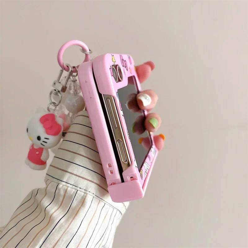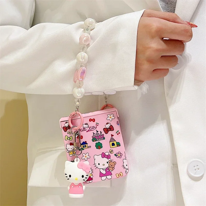 Cute Cartoon Sanrio Hello Kitty Phone Case For Samsung Galaxy Z Flip 6 5 Candy Colorful Hard Cover For Z Flip 3 4 With Lanyard