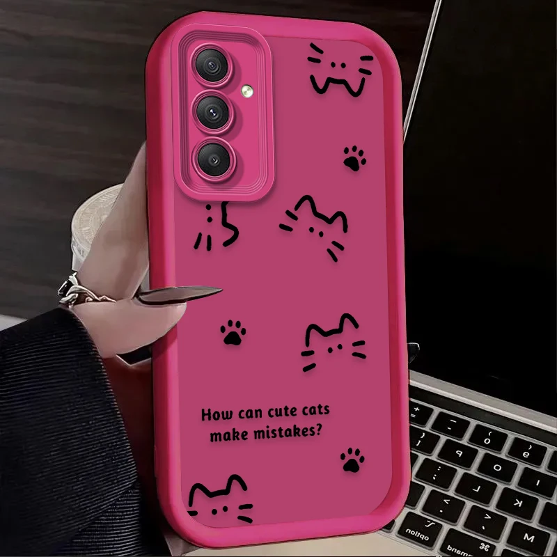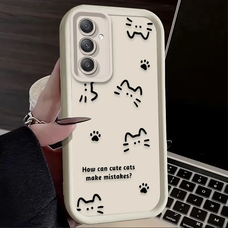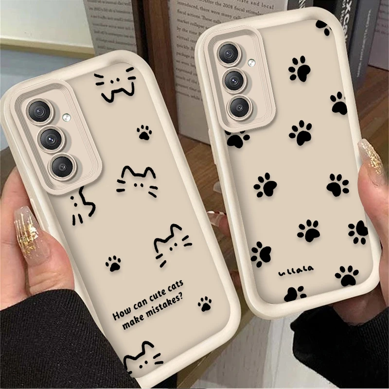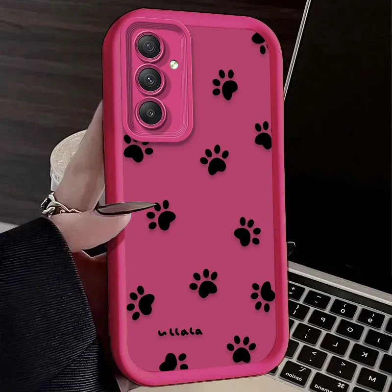 Cute Line Cat Dog Footprint Phone Case For Samsung Galaxy A14 A15 5G S21 S22 S23 S24 5G FE Plus Ultra A25 A35 A52 A53 A54 A55 5G