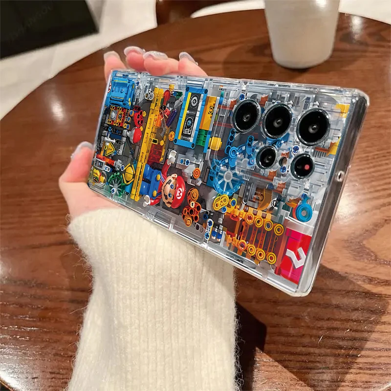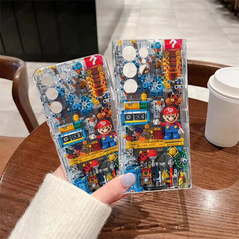 Fashion Building Block M-Marios Phone Case For Samsung Galaxy A14 A15 5G S22 S23 S24 Plus Ultra A35 A54 A55 5G Transparent Cover