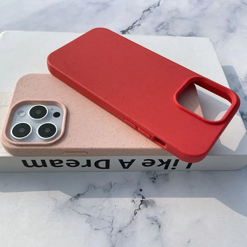 Fashion Wheat Straw Silicone Soft Case For iPhone 17 Air 16E 16 15 14 13 12 11 Pro Max Plus Eco-friendly Shockproof Matte Cover