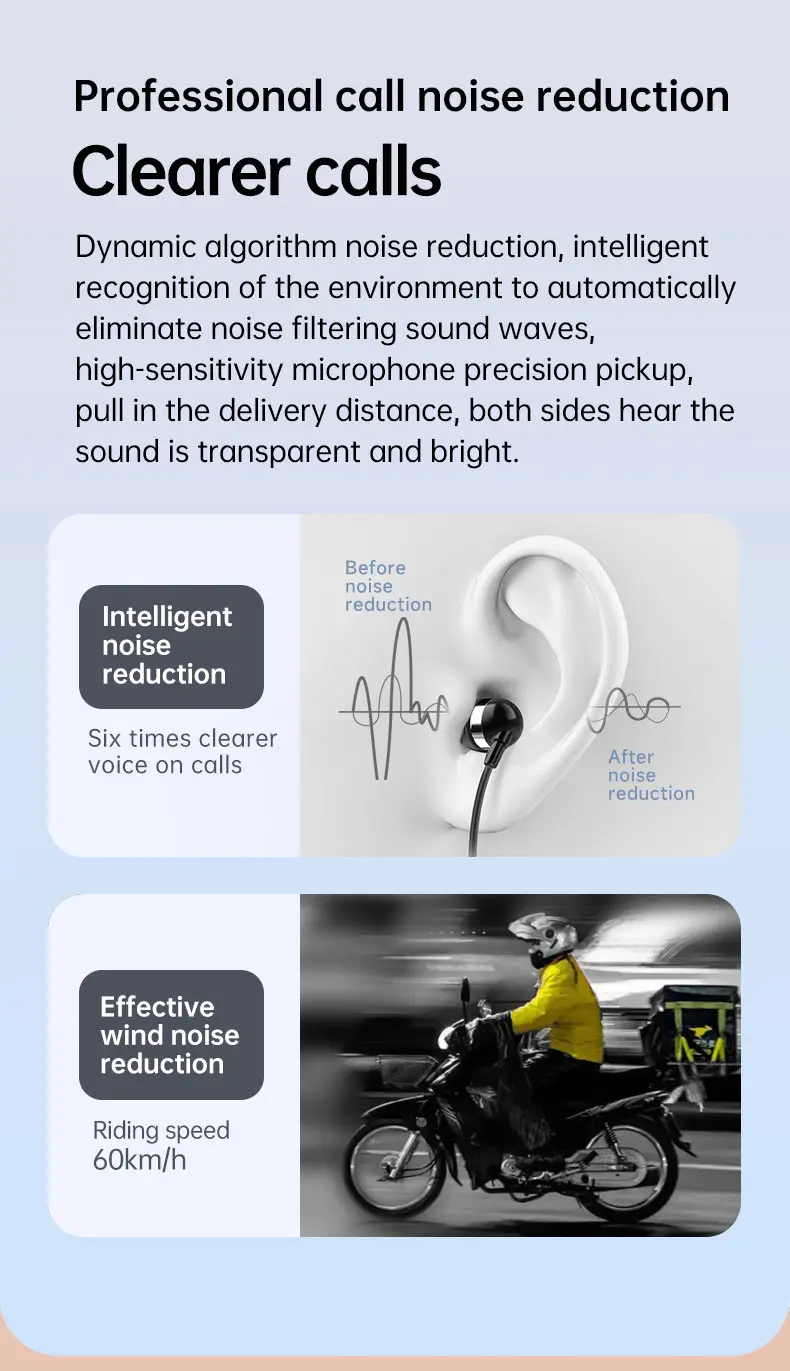 Classic CLIP-ON design, never worry about miss the earphone. Convient to use when driving/riding/working.