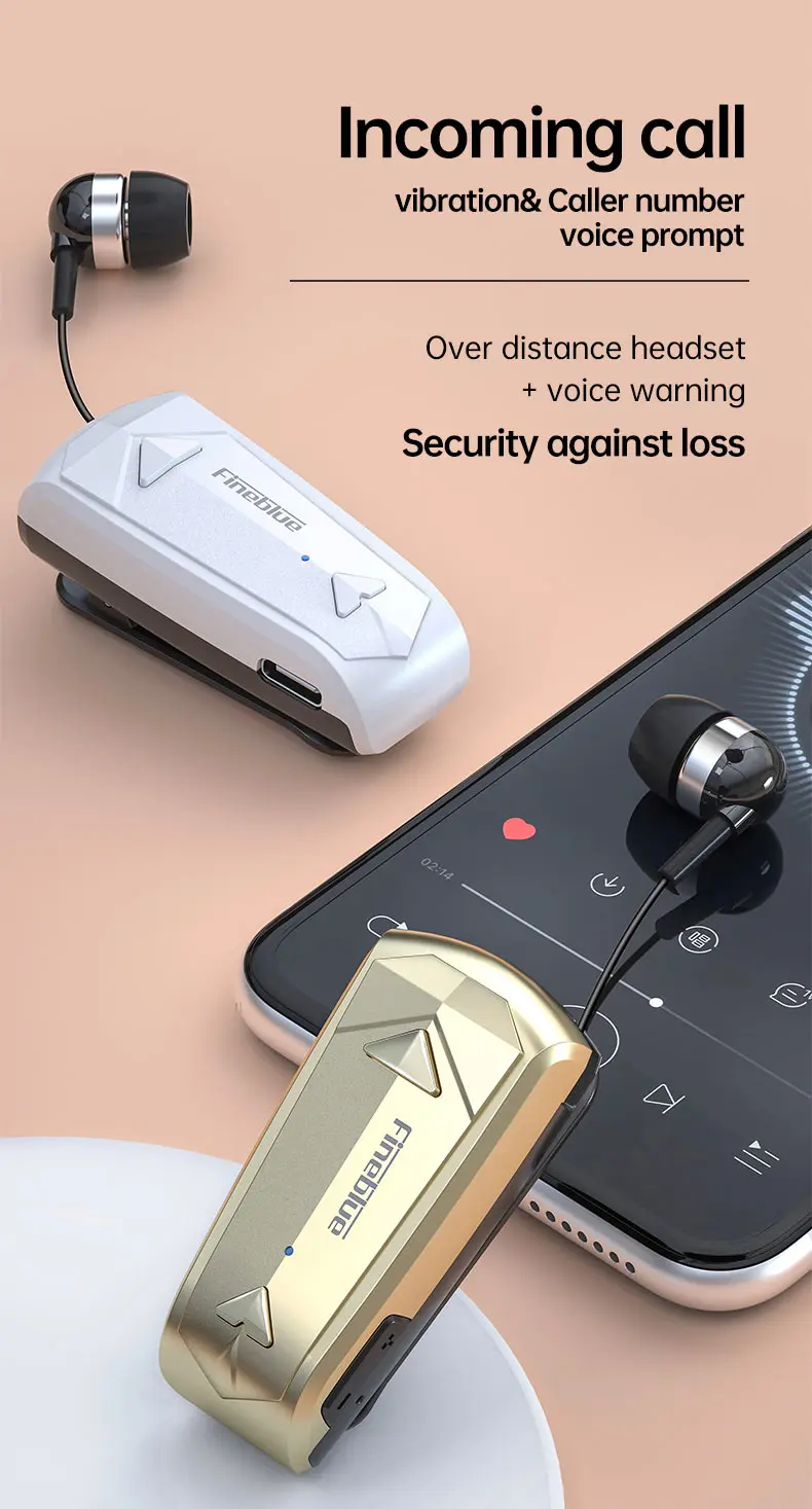 Fineblue F520 Bluetooth Earphones Wireless Headset Lotus One Ear Retractable Auricular Handsfree Headphone Lavalier Clip