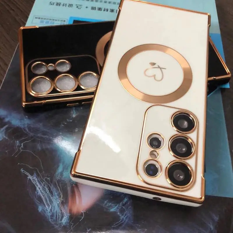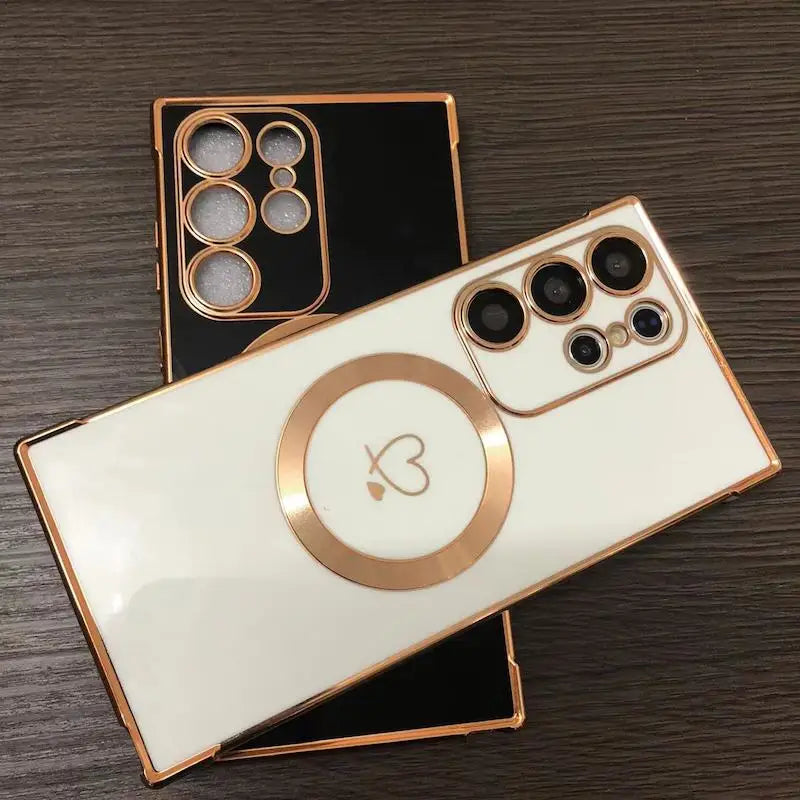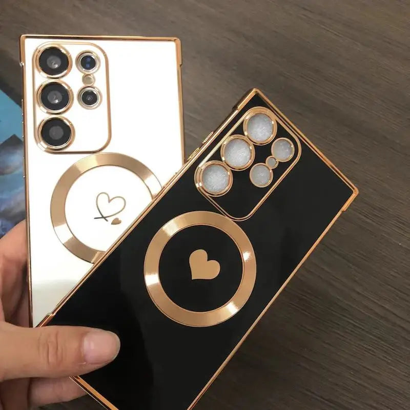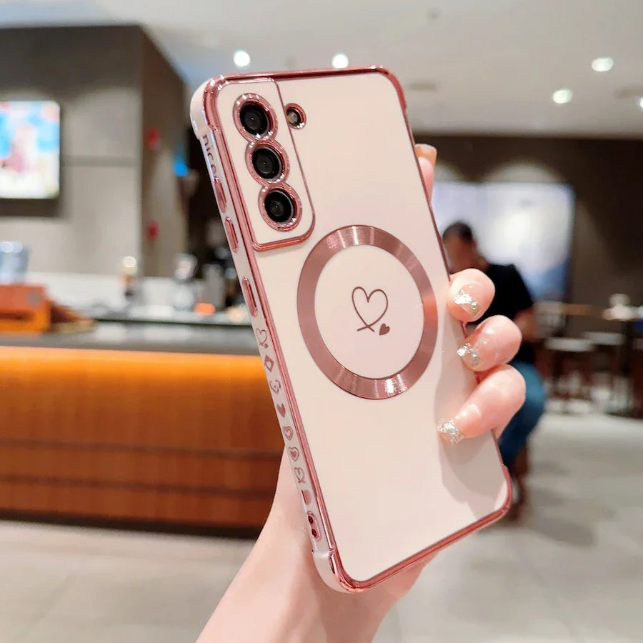 For Magsafe Case for Samsung Galaxy S23 Ultra S22 S21 Plus S24 Ultra S22Plus S20 S21 FE Electroplate Love Pattern Protect Covers