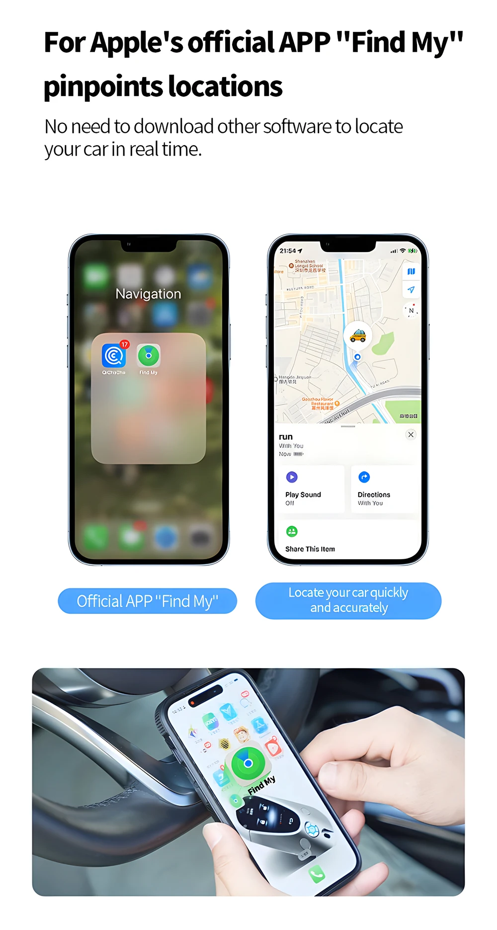 1,The working principle of this locator is to upload information from other Apple devices near the locator to the Apple iCloud server to generate location data.