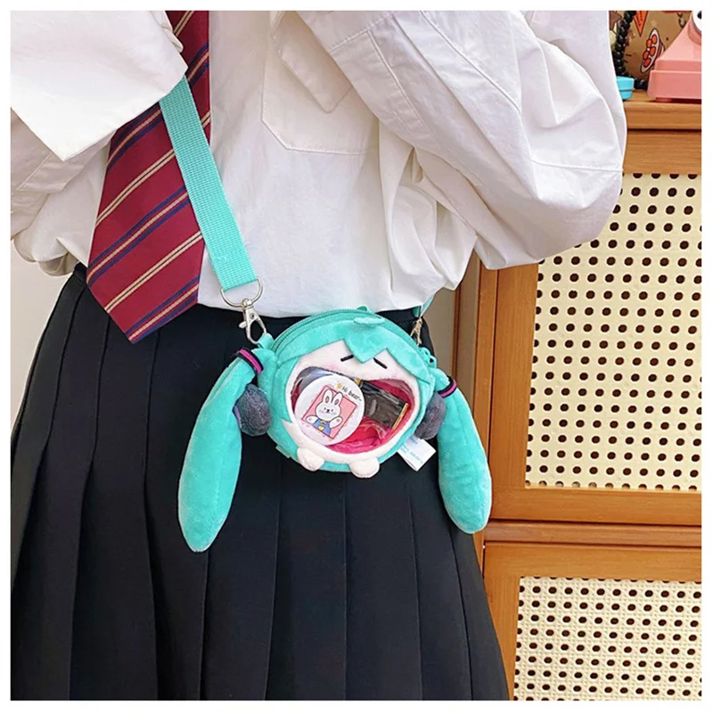 Hatsune Miku Coin Purse Shoulder Bag Cartoon Kawaii 14Cm Headphone Bag Plush Pain Bag Crossbody Bag Keychain Pendant girl Gift