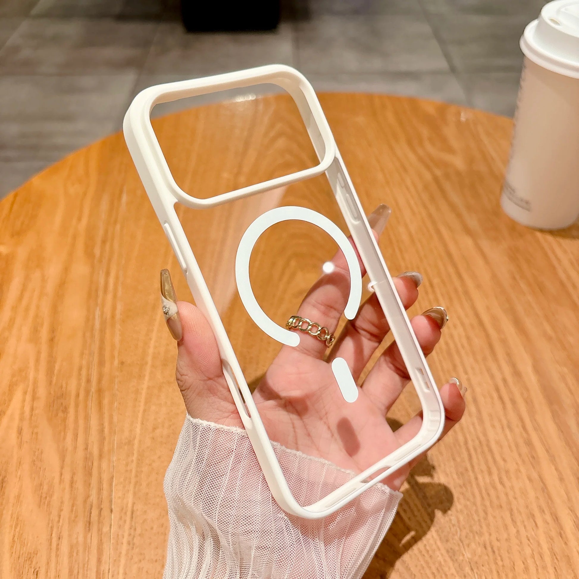 Luxury For Magsafe Magnetic Wireless Charge Case For iPhone 17Air 11 12 13 14 15 16 17 Pro Max Plus Transparent Hard Back Cover