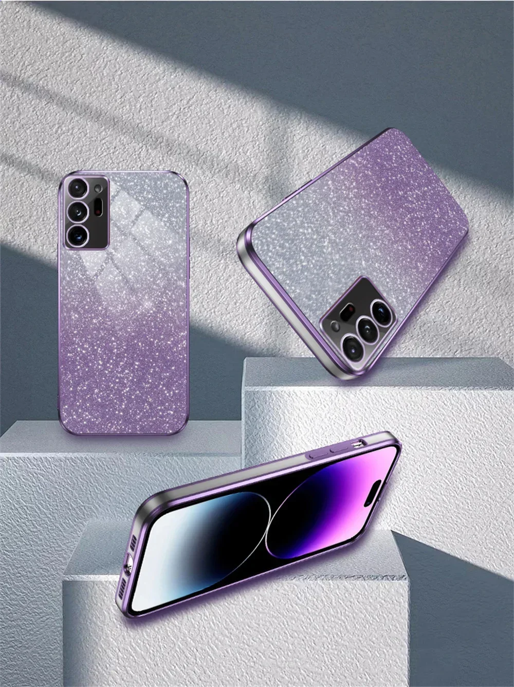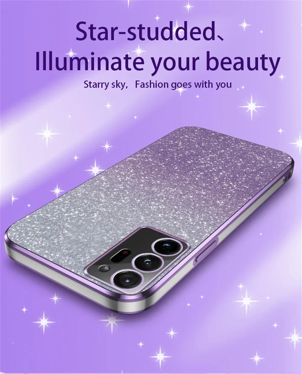 Luxury Gradient Glitter Plating Case For Samsung Galaxy S24 S22 S21 S23 Ultra FE Note 20 10 S10 S20 Plus Silicon Protect Cover