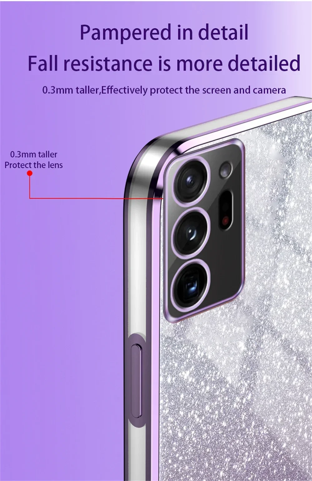 Luxury Gradient Glitter Plating Case For Samsung Galaxy Note 10 20 S10 S20 Plus S21 FE S22 S23 S24 Ultra Silicon Protect Back Cover