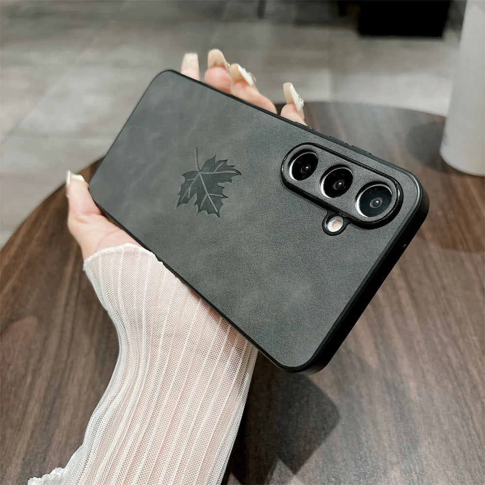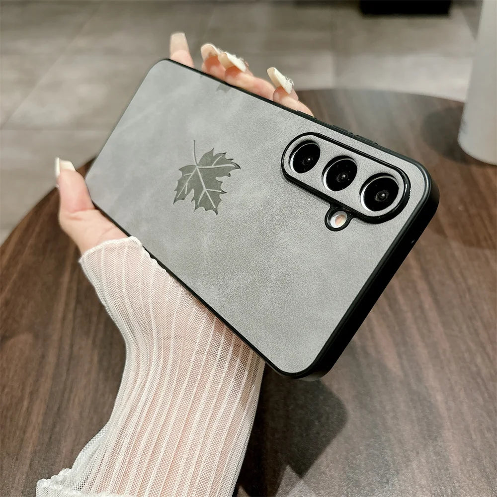 Luxury Lambskin Leather Maple Leaves Case for Samsung S25 S24 S23 S22 S21 Plus Ultra FE A55 A54 A53 A35 A34 A25 A24 A23 A15 A14