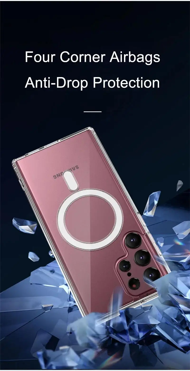 Magnetic Magsafe Wireless Charge Case for Samsung Galaxy S25 S24 S23 S22 S21 Plus S 25 24 23 21 FE Ultra Clear Shockproof Cover