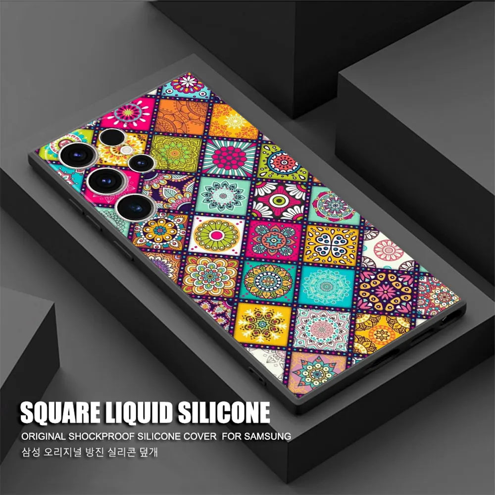 Mandala Luxury Case for Samsung Galaxy S20 S21 5G S24 Ultra S21 FE S23 Ultra S22 Plus S20 Plus S21 Plus S23 Black Soft Cover