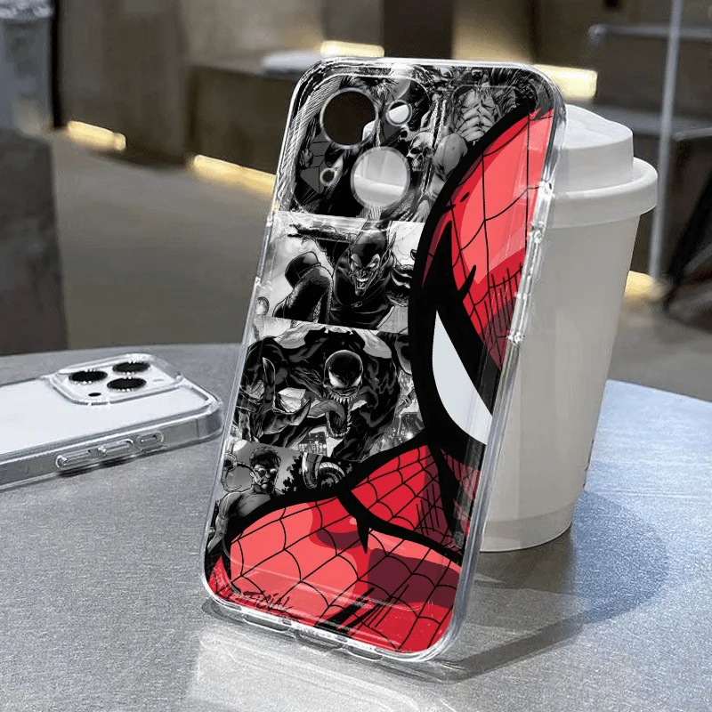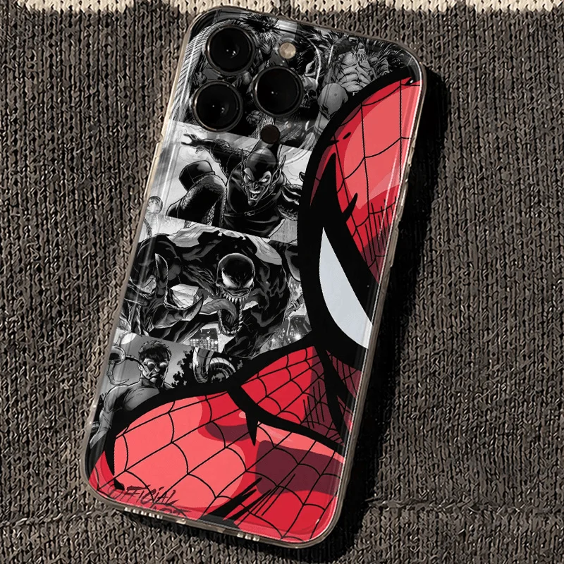 Marvel Cool Black Spider Man Soft Phone Case For iPhone 16 15 14 Pro Max 13 12 11 Pro X XR XS MAX 7 8 Plus Y2k Anti Fall Cases