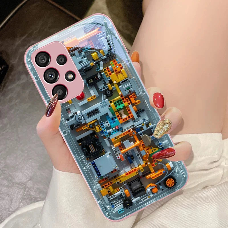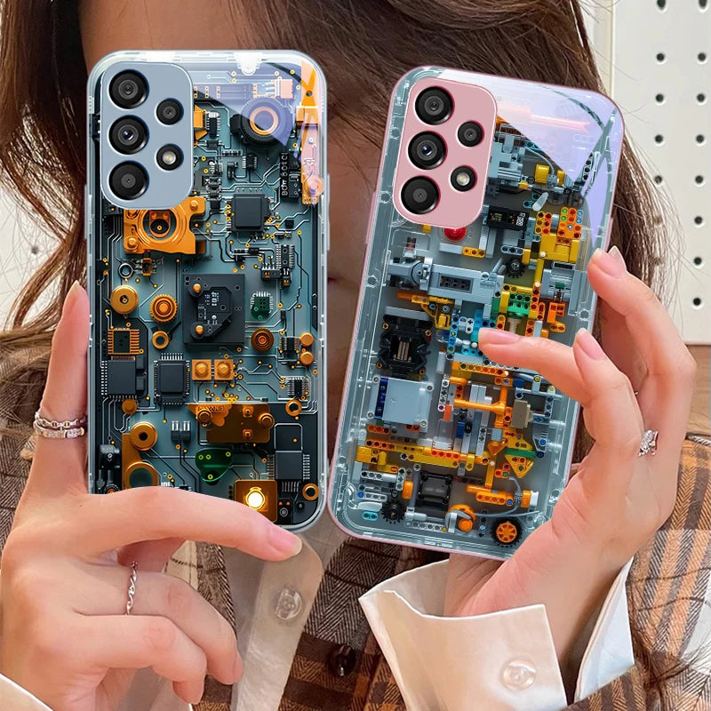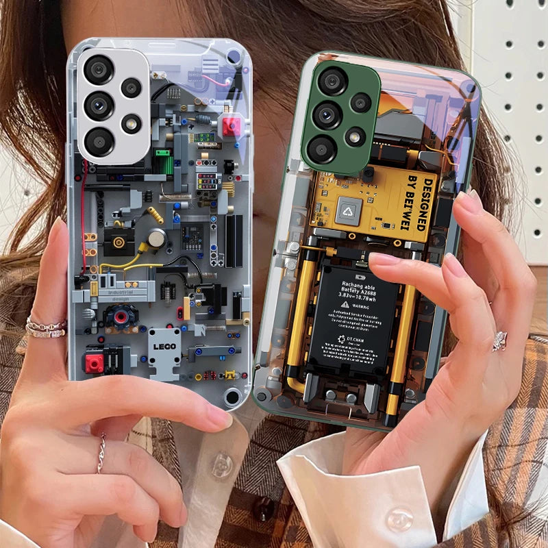 Mechanical device black For Samsung Galaxy S10 4G S20 11E 30 S21 22 S24 Fe Pro S23 S25 Ultra 5G S9 Tempered Glass Phone Case