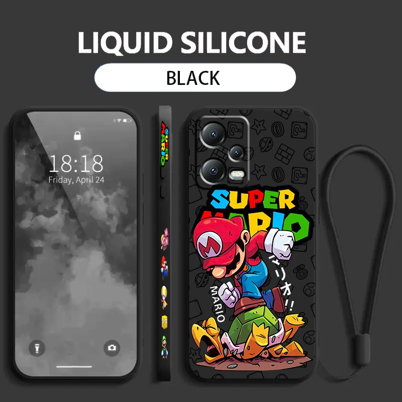 S-Super M-Marios B-Bros Liquid Left Rope For Xiaomi Redmi Note 13 12 12S 12R 11 11T 11S 10 10S Pro Plus 5G Back Phone Case