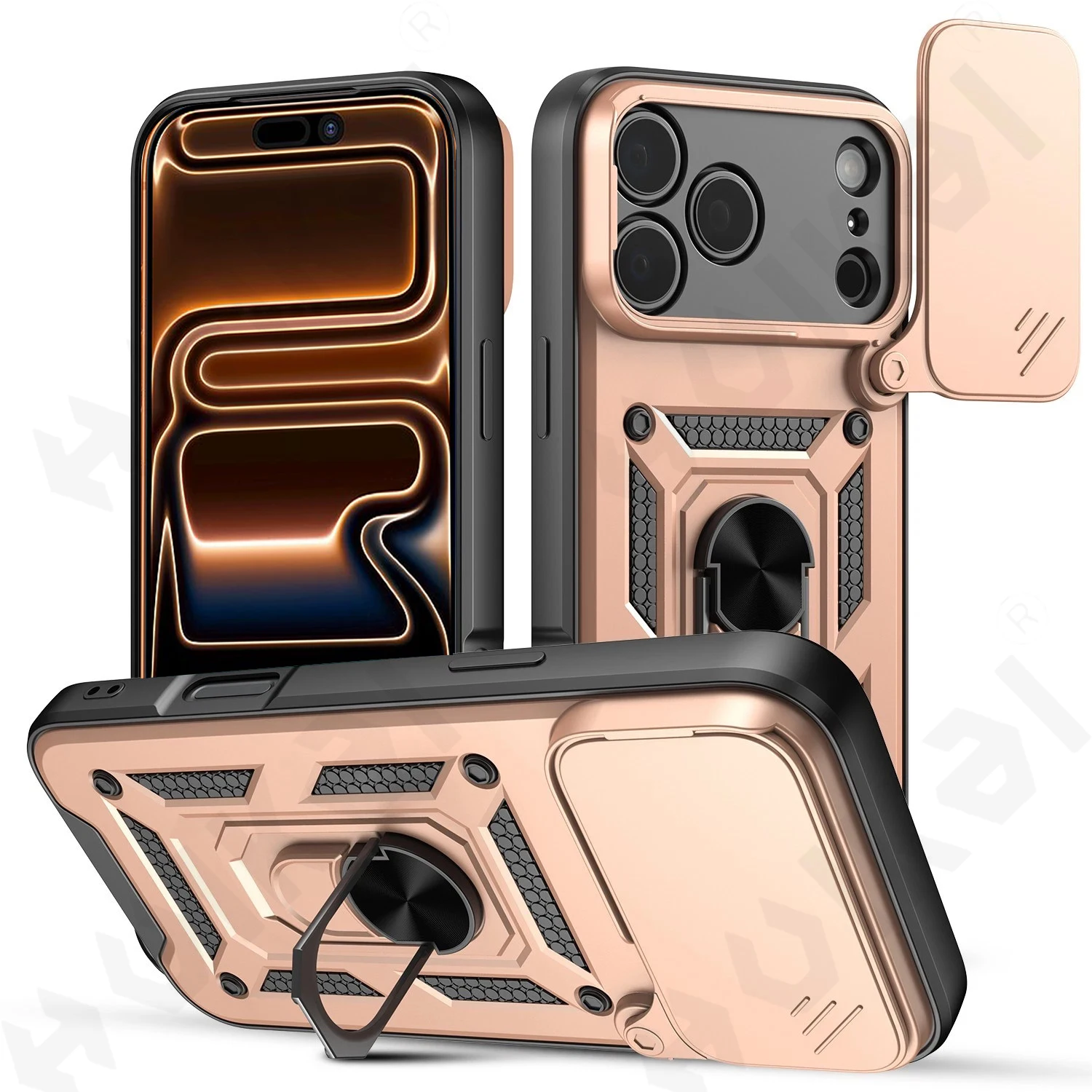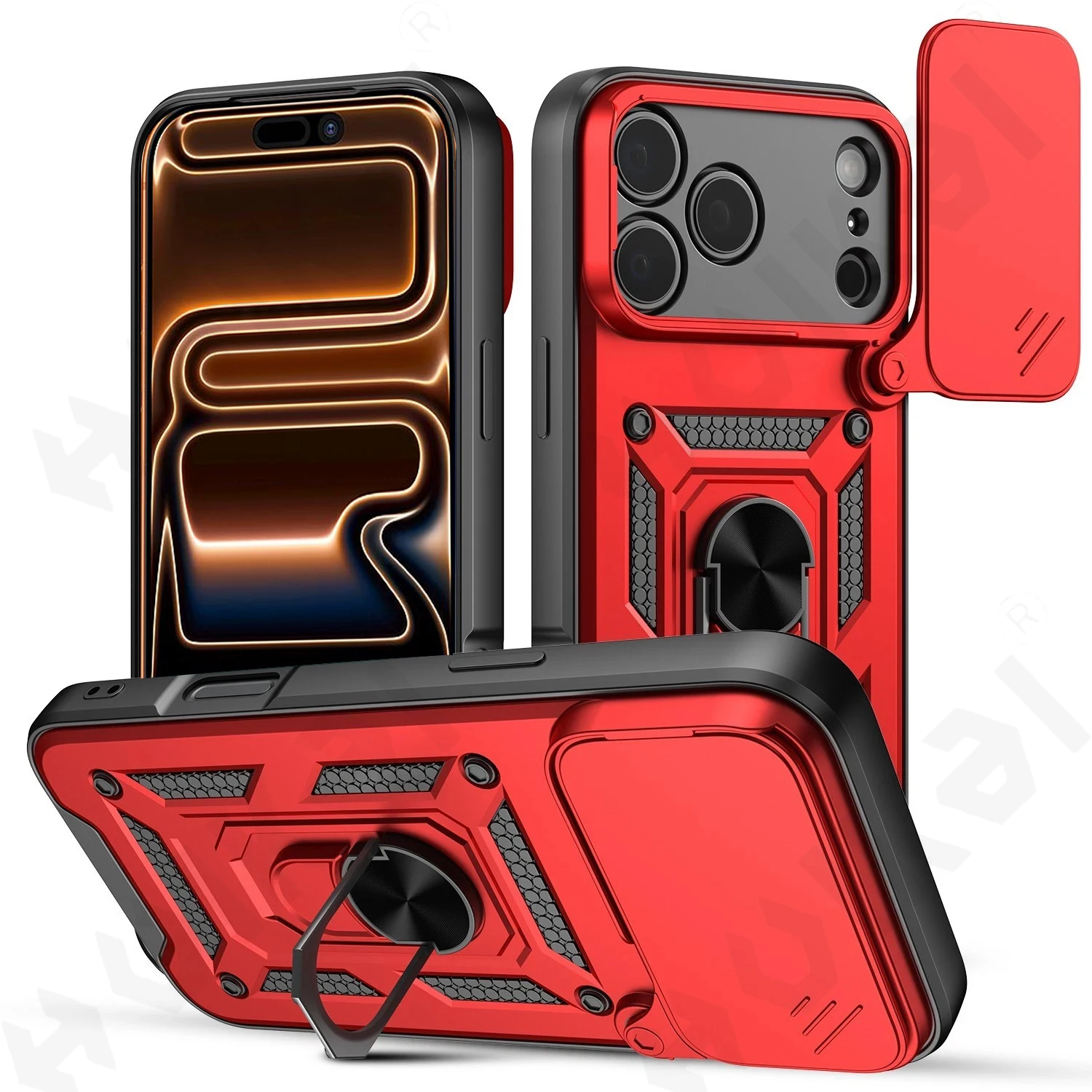 Shockproof Case For iPhone 17 16 15 14 13 12 11 Pro XS Max Plus Camera Lens Cover Phone Case with Ring Stand Armor rotate Cover