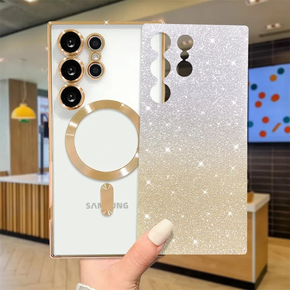 Sparkle Cover For Samsung Galaxy S25 S24 S23 Plus S22 S21 S20 FE S24FE S23FE S21FE S20FE Glitter Note 20 Ultra A56 MagSafe Case
