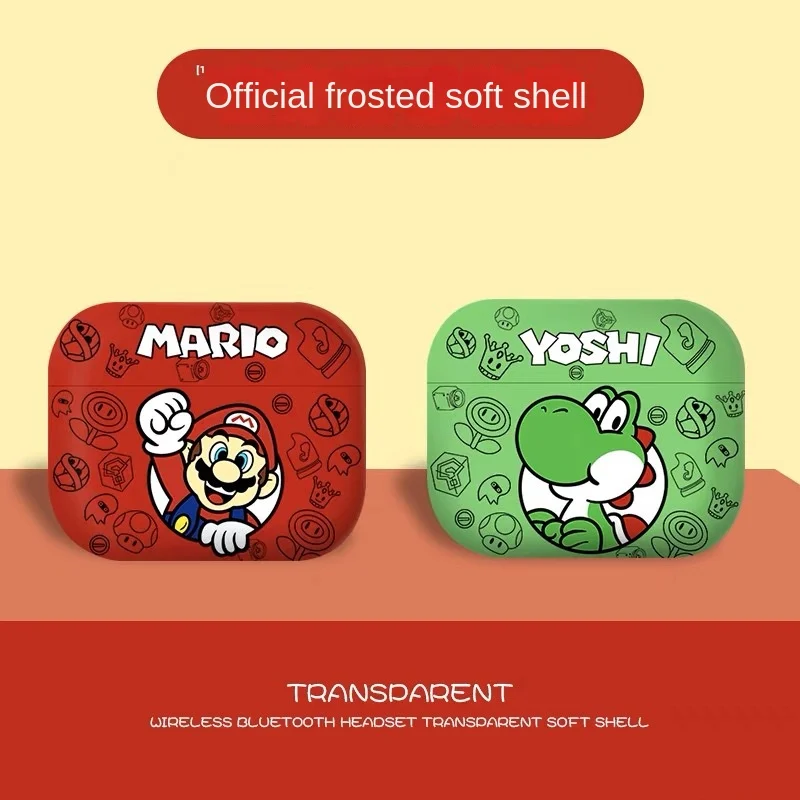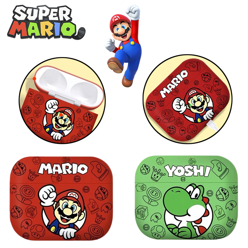 Super Mario Cartoon Printed Earphone Case for Airpods 1 2 3 Pro Pro2 Anime Yoshi Protective Shell Cute Dustproof Headset Cover
