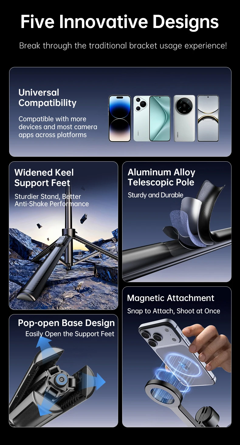 T18 Magnetic Phone Tripod Wireless Phone Grip Selfie Stick Desktop Tripod