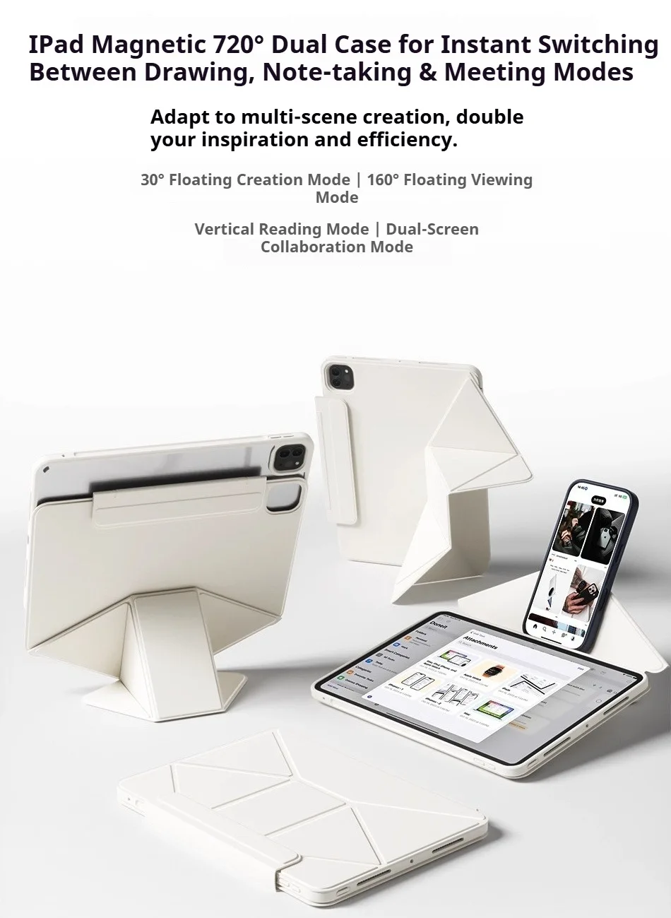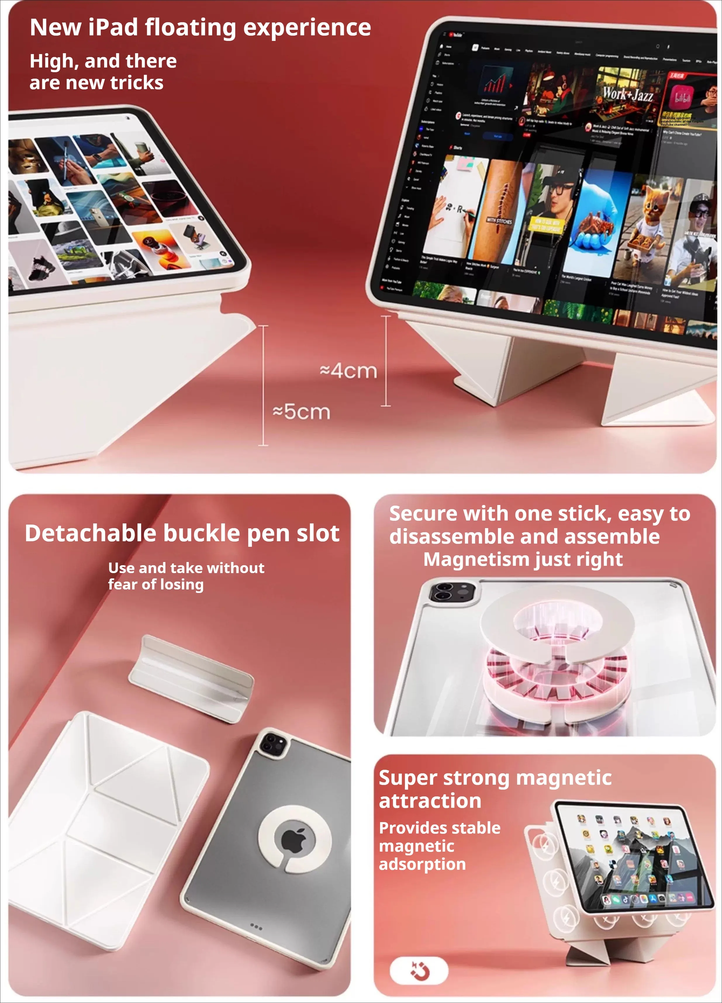 ZOYU for iPad 10/11th Increase Height Bracket Case, Magnetic Transparent Removable Cover iPad Pro 11 12.9 13 Air 4/5th mini 6/7